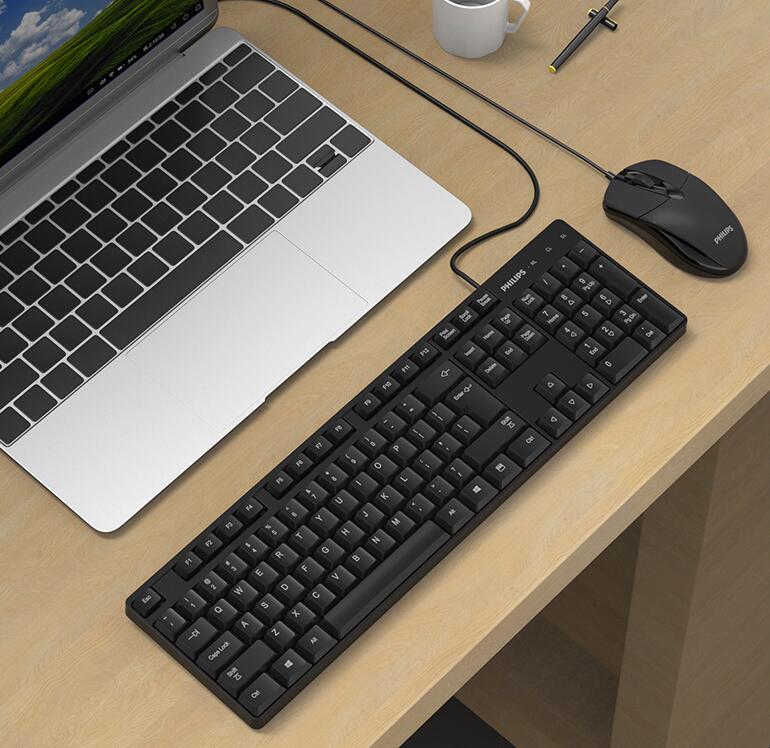 飛利浦鍵盤鼠標(biāo)套裝USB有線電腦臺(tái)式筆記本辦公專用打字游戲機(jī)