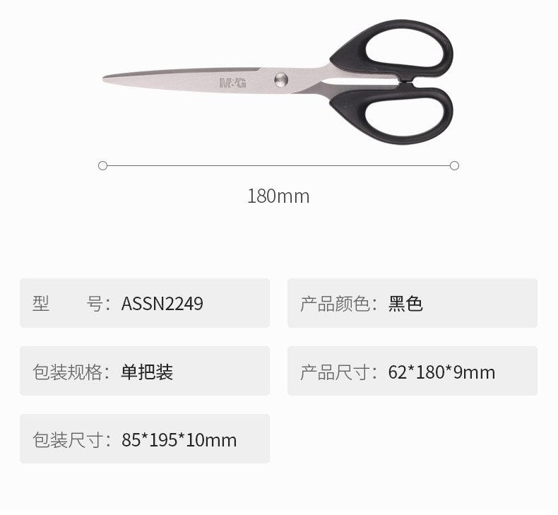 晨光(M&G)文具黑色180mm經(jīng)典辦公剪刀 學生手工剪紙刀 普惠型家用剪子 單把裝ASSN2249