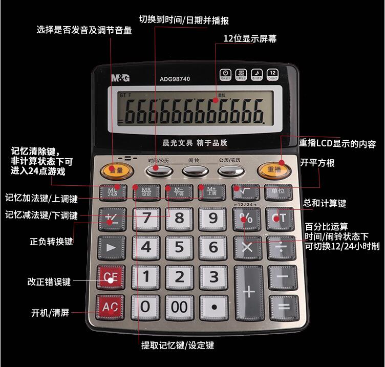 晨光計算器帶語音辦公用會計專用商務(wù)計算機(jī)辦公室大號大按鍵大屏幕女真人發(fā)音財務(wù)學(xué)生用小號便攜電子記算器